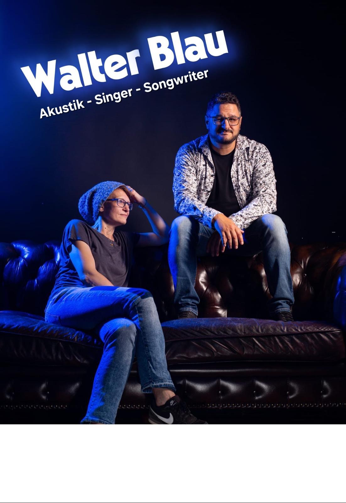 Walter Blau gelten in der Rhein-Neckar-Region als Geheimtipp im Liedermacher-Umfeld: deutschsprachige Pop- bis Rock-Songs, akustisch und pointiert erzählt. Sebastian gründete die Band "Feuerregen" in 2005 und veröffentlichte in 2010 die CD "Ehrlich gesagt" mit dem neuen Bandnamen "Tye Red". In diesem Jahr kam Patricia dazu. Das Duo ergänzte sich immer wieder mit Musikern aus der Region. Als Trio veröffentlichten sie 2013 unter dem aktuellen Bandnamen "Walter Blau" die CD "Schon gehört?". Daraufhin waren sie live als Akustik-Combo unterwegs. Unter anderem folgten Einladungen zur Sendung "Kaffee oder Tee" im SWR, zu regionalen Radiosendern und zu einem Gig auf ein Klo in Freising. Jetzt sind sie mit dem neuen Album "Die Welt ist blau" zurück. Im Studio mit dem Sound einer kompletten Band, live hingegen pur und nahbar als Akustik-Duo.